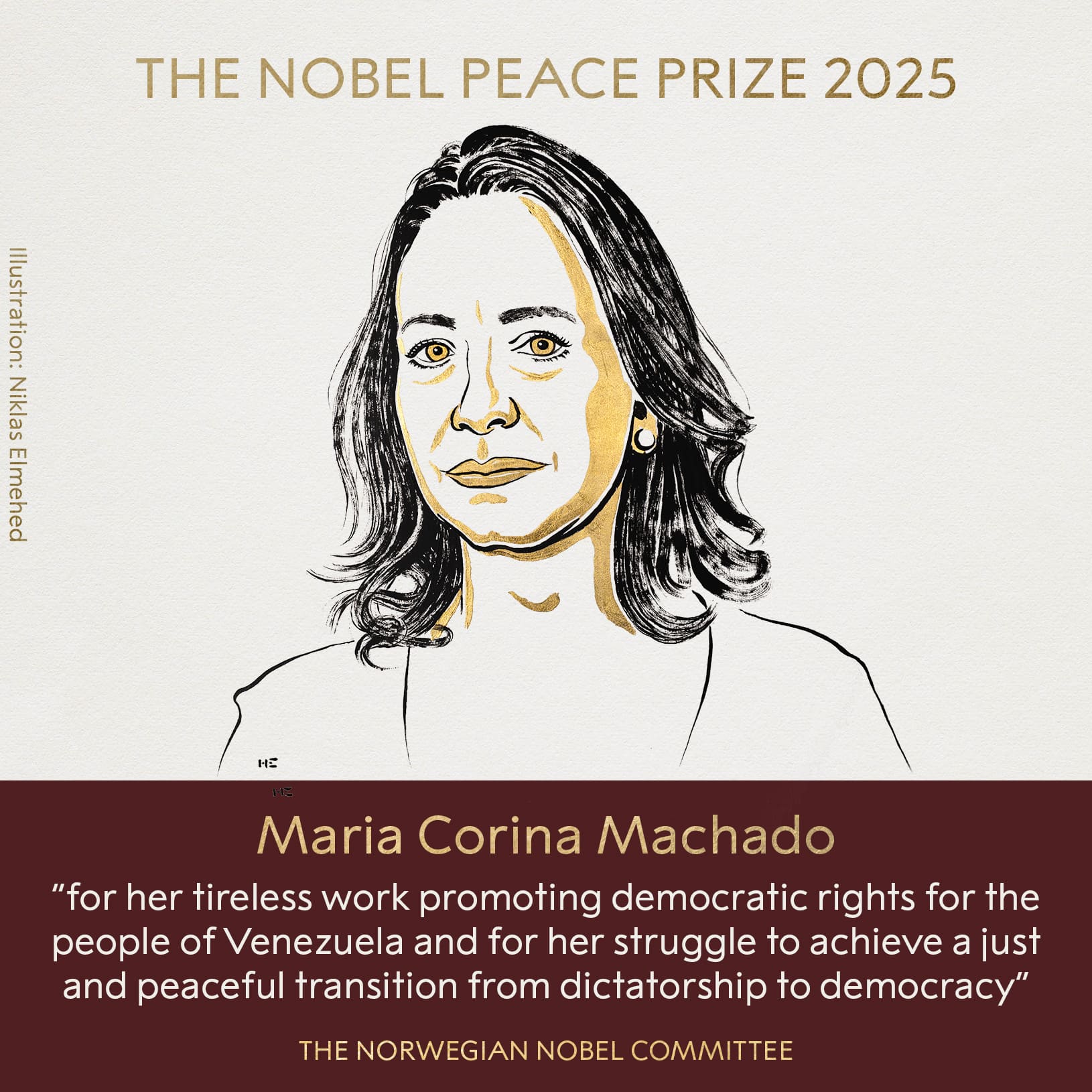 2025 Nobel Barış Ödülü, Norveç Nobel Komitesi tarafından duyuruldu. Ödülün sahibi María Corina Machado oldu.